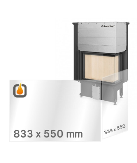 Náhradné žiaruvzdorné prizmatické sklo s hrúbkou 4 mm a rozmermi 833 x 550 mm a 339 x 550 mm do krbovej vložky IMPRESSION R/L 2g L 83.60.34.21.