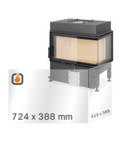 Náhradné žiaruvzdorné prizmatické sklo s hrúbkou 4 mm a rozmermi 724 x 388 mm a 424 x 388 mm do krbovej vložky DYNAMIC R/L 3G S 72.44.42.21.