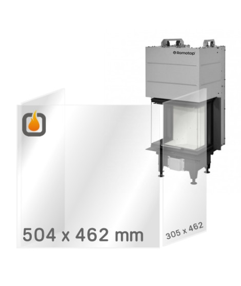 Náhradné žiaruvzdorné prizmatické sklo s hrúbkou 4 mm a rozmermi 1 kus 504 x 462 mm a 2 kusy 305 x 462 mm do krbovej vložky Sklo do HEAT C 3G L 50.52.31.24.