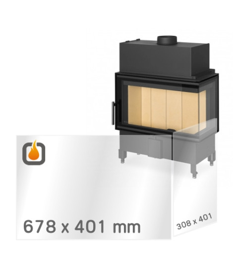 Náhradné žiaruvzdorné prizmatické sklo s hrúbkou 4 mm a rozmermi 678 x 401 mm a 308 x 401 mm do krbovej vložky HEAT R/L 2G S 70.44.33.23.