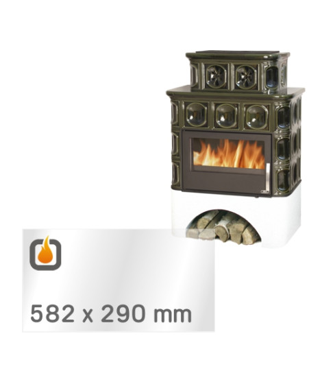 Žiaruvzdorné sklo je ploché a číre. Prepúšťa všetko teplo z ohniska do vykurovaného priestoru, zostáva rozmerovo stabilné aj po intenzívnom zahriatí a je vysoko odolné voči tepelným šokom. Maximálna tepelná odolnosť je 800 °C. Ide o špičkovú kvalitu – prémiové žiaruvzdorné sklo ROBAX® od SCHOTT, popredného nemeckého výrobcu. Sklo má hrúbku 4 mm a presný rozmer 582 x 290 mm, čo zaručuje perfektnú kompatibilitu s modelom ABX KARELIE. Je úplne číre, bez potlače, bez obvodového čierneho rámčeka a obojstranne totožné, takže inštalácia je jednoduchá a bez rizika nesprávneho umiestnenia.